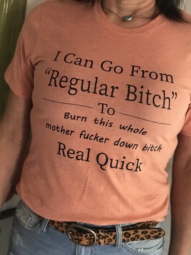 I can go from Regular Bitch to burn this Motherfucker down Bitch real quick on a coral tee. Runs true to size with a unisex fit.